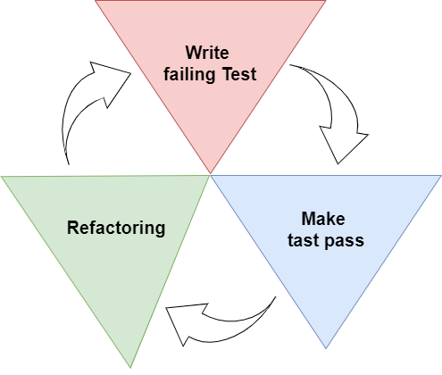 TDD는 세 부분의 단계를 가지고 있습니다. 이 사이클은 테스트-코드-리팩토링 과정을 가지고 있습니다. 개발한 코드에 대해 이 사이클을 점진적으로 반복하며 개선합니다.
