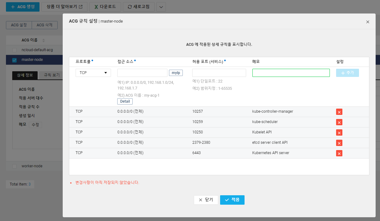 위 정보를 ACG 설정에서 설정해주어야 합니다.