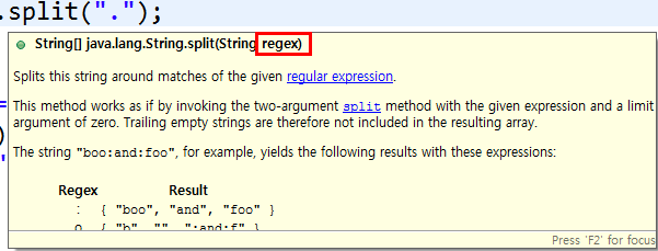 이것은 split(); 메서드에 들어가는 "."이 정규식으로 작동하기 때문입니다.