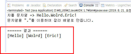 System.out.println("문자열을 \".\"를 이용하여 잘라 배열로 만듭니다.");
