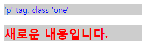 이 때 "새로운 내용"에 HTML태그가 있으면 이 태그가 적용되어 나타납니다.