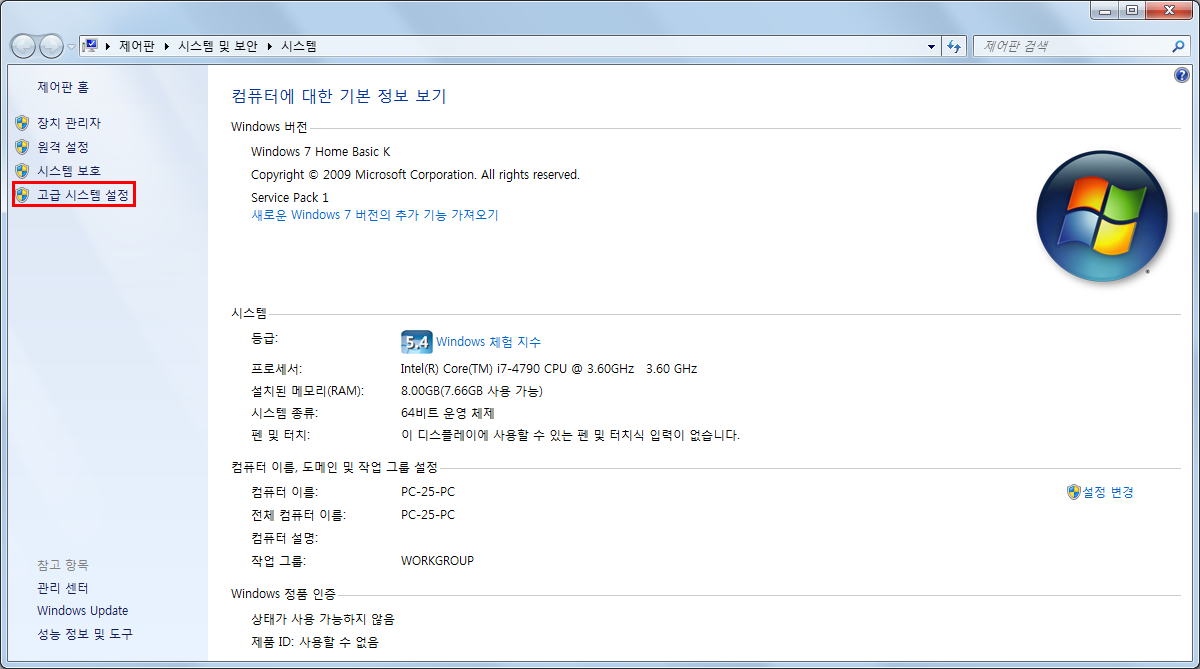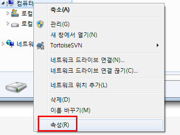 컴퓨터를 우클릭한 후 속성을 눌러주세요