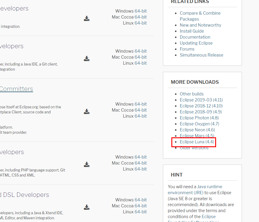 오른쪽 탭에서 Eclipse Luna(4.4)를 선택해주세요.