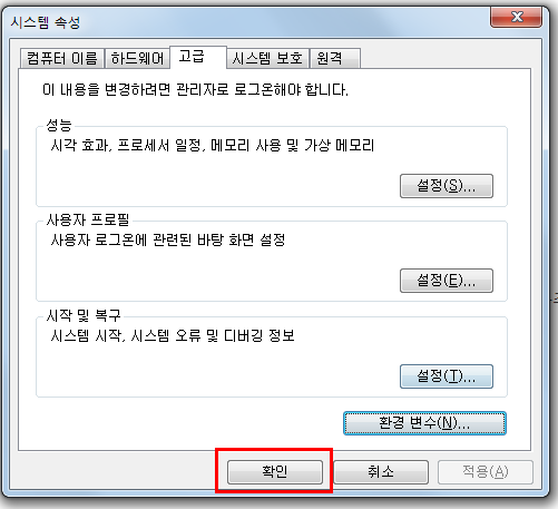 고급 시스템 설정으로 들어가주세요.