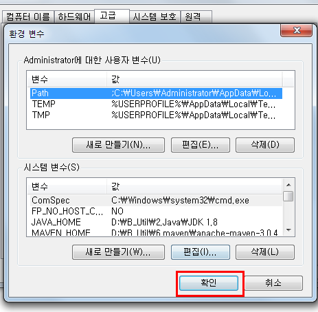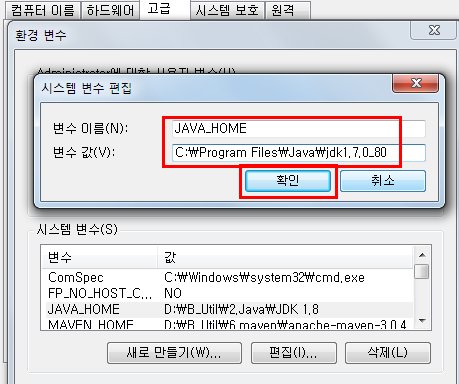 변수 이름은 JAVA_HOME 을 입력해주시고,