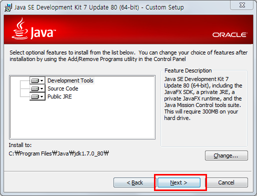 기본 설정 경로 - C:\Program Files\Java\jdk1.7.0_80