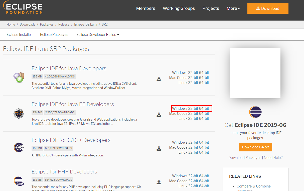 대중적으로 많이 사용되는 Eclipse Luna버전을 설치하겠습니다.