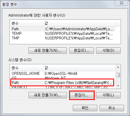 Path를 선택하신 후 편집을 눌러주세요.
