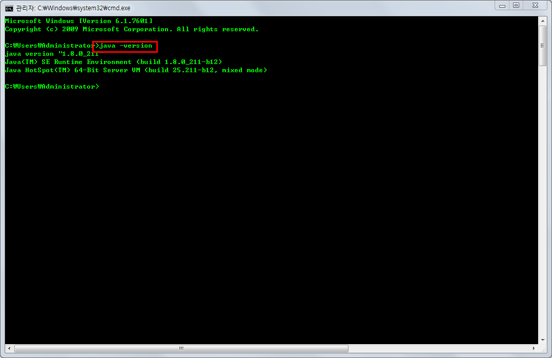 을 입력해서 자바 버전이 나온다면 정상적으로 등록된것입니다.