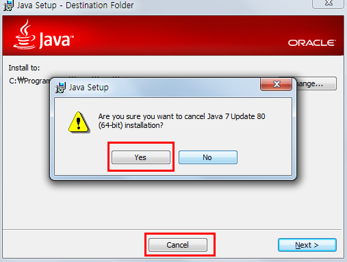 추가적으로 JRE라는 것을 설치할 것이냐고 물어보는 창인데, 습관적으로 Next를 누르지 마시고 Cancel을 눌러 종료해주세요.