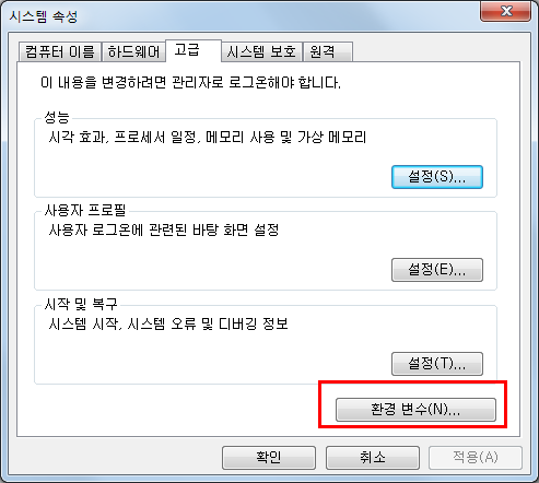 환경변수를 눌러주세요.