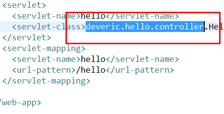 <servlet-class>deveric.hello.controller.HelloController</servlet-class>