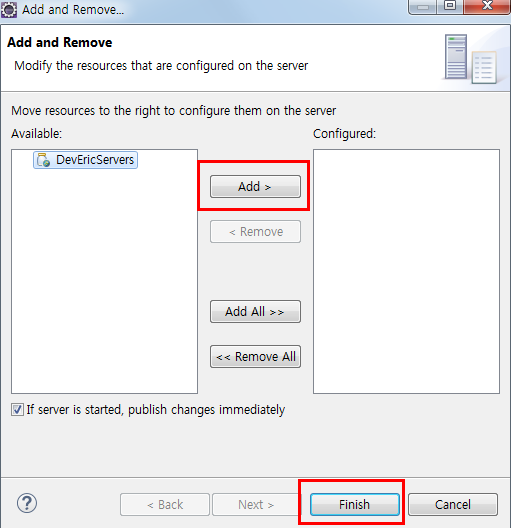 제작해 놓은 서버를 우클릭 한 후 Add and Remove를 클릭해주세요.