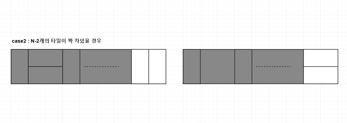 n-2개의 타일까지 꽉 차있다면 가로의 길이가 2가 남기 때문에 2가지의 경우가 생깁니다.