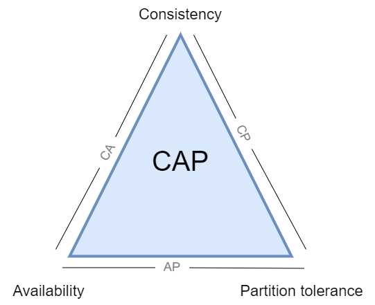 일관성(Consistency) - 모든 노드들이 동일 시간 동일 데이터를 사용자에게 보여줘야 하는 것 가용성(Availability) - 특정 노드에 장애가 발생해도 성공적으로 서비스를 지속하는 것 분할 내성(Partition tolerance) - 연결이 끊어져도 연속해서 동작하는 것 |